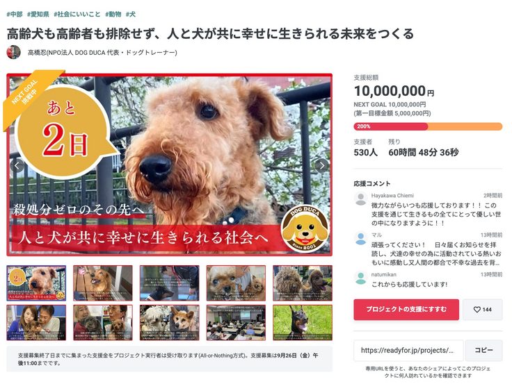 残り2日。最後の最後まで、ご支援、そしてSNSなどでのシェアのご協力を、どうぞよろしくお願いいたします。