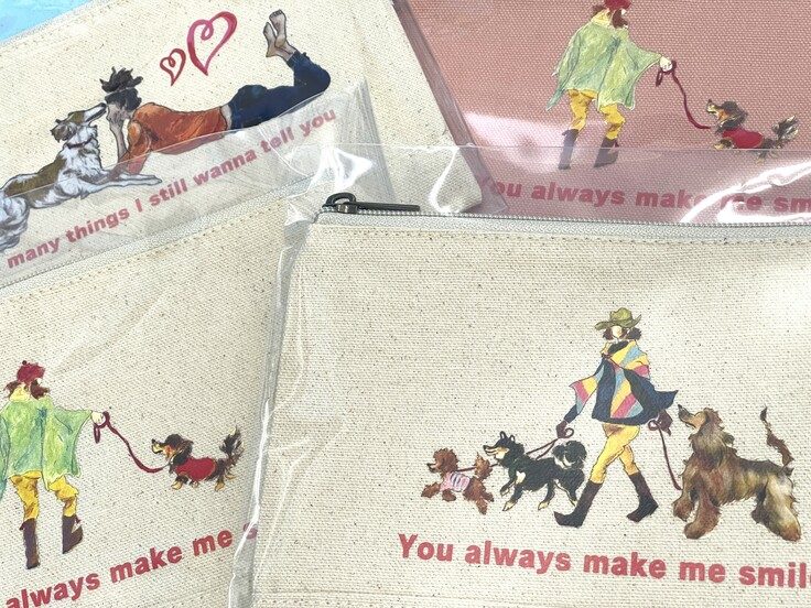 そんな、ステキなワンちゃんの絵を描くチャッピーママが、DOG DUCAの活動資金にと、オリジナルポーチを作って送ってくださいました。