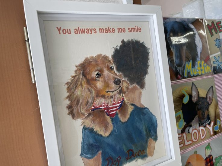 この二つの絵はともにDOG DUCAの入口に飾っていますが、ふたりに見守られているようで、見るたびにパワーがもらえます。