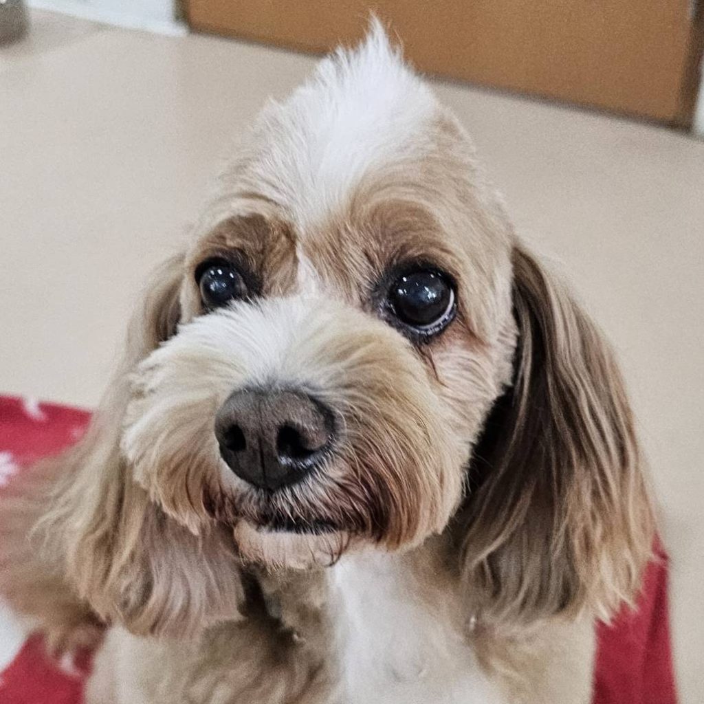 キャバリアとプードルのMIXであるディーボは、もともと1歳から「わんわん保育園DUCA」に通園していた子でしたが、3歳のとき、飼い主さんが若いのに癌となり余命宣告されたため、当団体で保護していました。