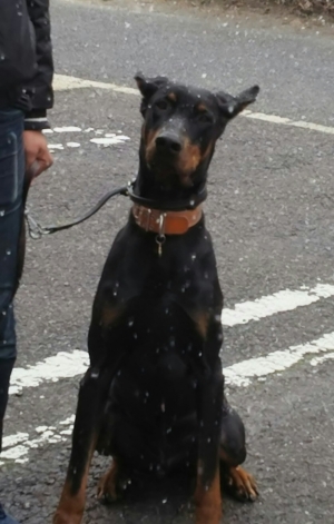 保護したドーベルマンは、僕への服従トレーニングが早くに入り、その姿も撮影されました。