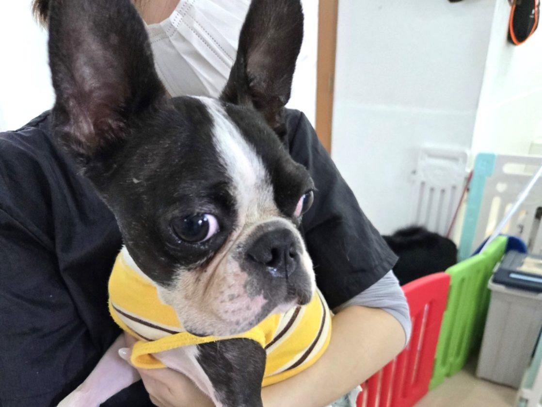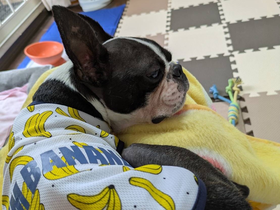 ボストンテリアのルナは、元々の飼い主だった夫婦が飼い始めたものの、すぐに妊娠・出産。しかも母子共に体調が悪く、夫婦の両親が引き取り面倒をみていました。