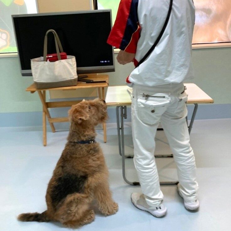 そこの保護団体では一時的に保護してもらえましたが、ずっとは難しかったようで、かかりつけの獣医さんを頼り、そこから日本エアデールテリア クラブ オブ ジャパンに相談が行き、以前エアデールのトレーニングをしたことで縁があったことから「それならDOG DUCAだ」、と獣医さんがわざわざ飛行機に乗って名古屋まで連れて来てくださいました。