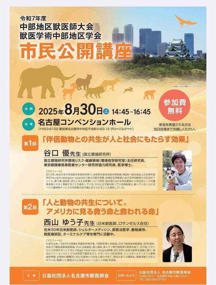 実はその谷口先生が、8/30に名古屋で行われた市民公開講座で、高齢者と高齢犬が、支え合う「シニアドッグ・サポーター制度」を成功例としてご紹介いただいたそうです!