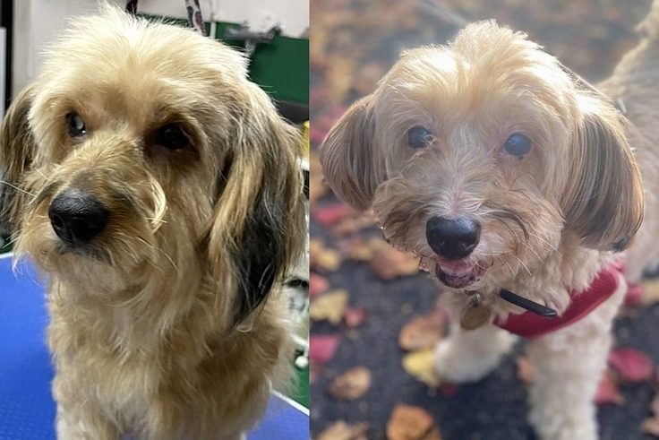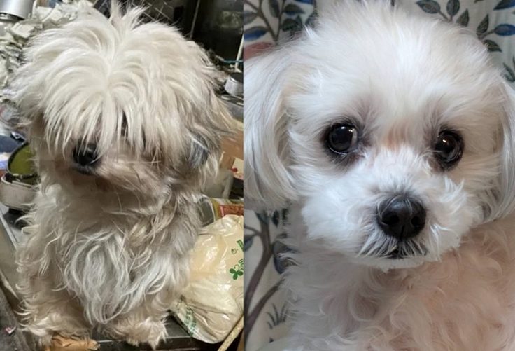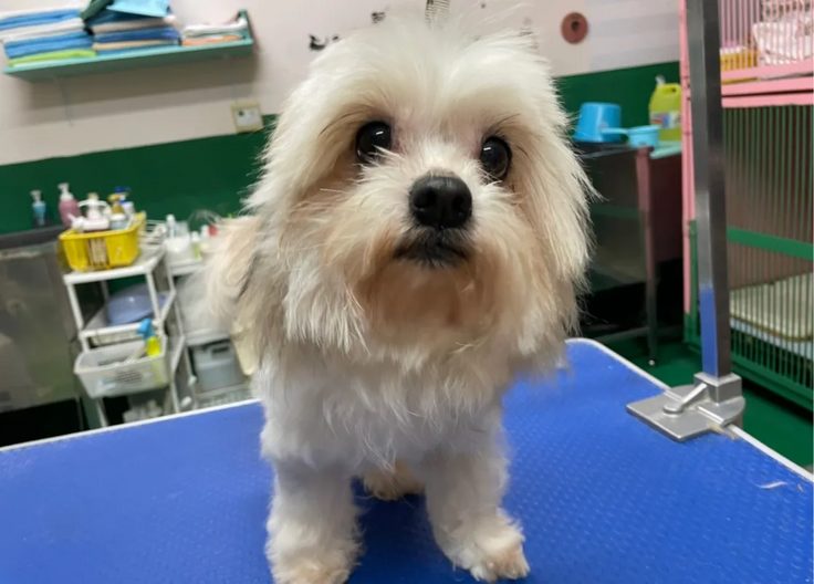 マルチーズとシーズーのMIXと思われる男の子クリープの方は、ひどく汚れていましたが、キレイにしてあげると目もハッキリと見えるかわいらしい顔が見えてきました。