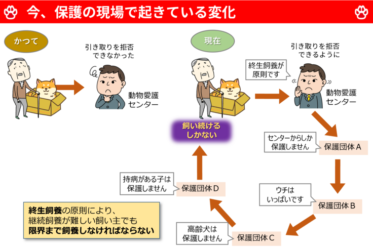 ただこのままでは、面倒をみきれない高齢者、もしくはその高齢者の親族が、犬に愛情がもてないままずっと飼い続けるという悪循環が止まりません。