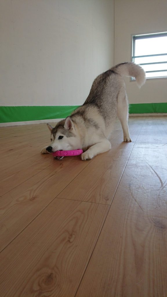 ひとりじめ(°▽°)☆ 2018年7月28日 わんわん保育園日記 スタッフ高木 今日は台風の影響で通園が少なめです(..) 皆さま、十分注意して下さい!! 今日はおもちゃをひとりじめ~(°▽°)のシャルムちゃん♪ いつも遊ぶ大型犬の子達が今日はお休みなので、 私が全力で一緒に遊びます☆(笑)