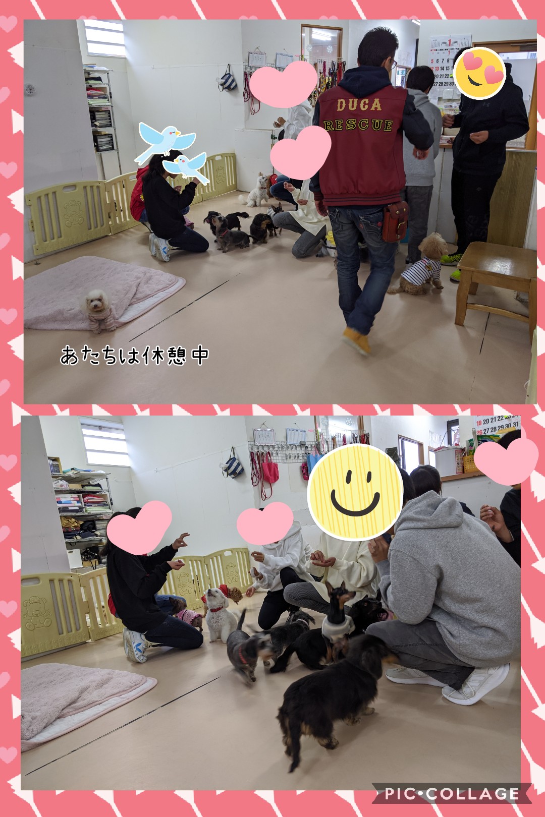 ハピちゃん☆ 2020年1月16日 わんわん保育園日記, トリミングルームだより スタッフ高木 この時期はたくさんの学生さんが 職場体験で来てくれることが多いです(•‿•) 今日も中学校から来てくれていました! にぎやかな日々が続きます( ꈍᴗꈍ) 学生さん達には正しい接し方を伝えて、 初めましての人に対して苦手なわんこも 平気になれるよう経験をしていきます☆ 写真のハピちゃんも 大喜びで楽しそうでした( ◜‿◝ )♡ お預かり中にトリミングも行いました♪