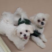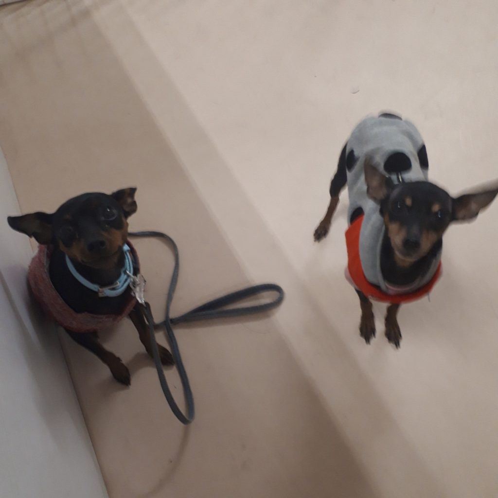 いつも、リードを着けて逃げて解決することをできないようにして、座らせたり、おやつで誘導して良い思いにしたり、今日は同じ犬種のミニピン、メロディと散歩したりしています!