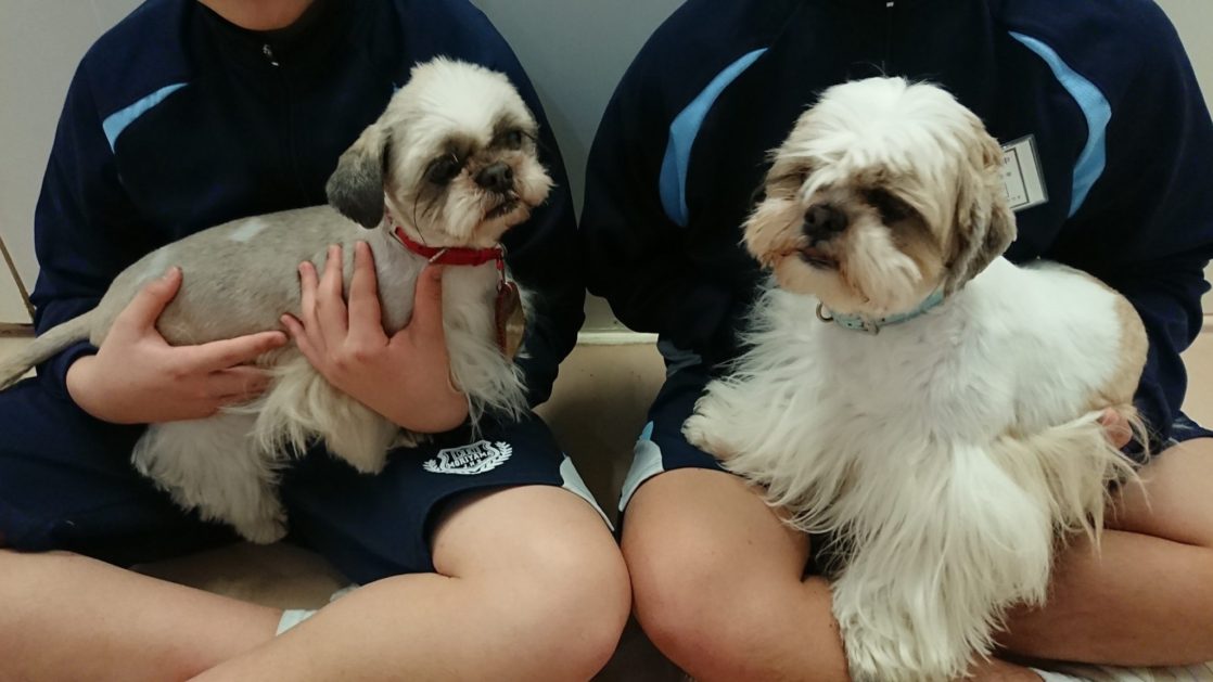 ラムちゃん&キャラちゃん 2019年1月31日 わんわん保育園日記 スタッフ高木 この時期はいろんな中学校から 職場体験で学生さんが来てくれます(*´ω`*) 保育園がにぎやかです(*^^*) 昔から通園してくれている ラムちゃんキャラちゃん♪♪ べったりですヽ(´▽`)/