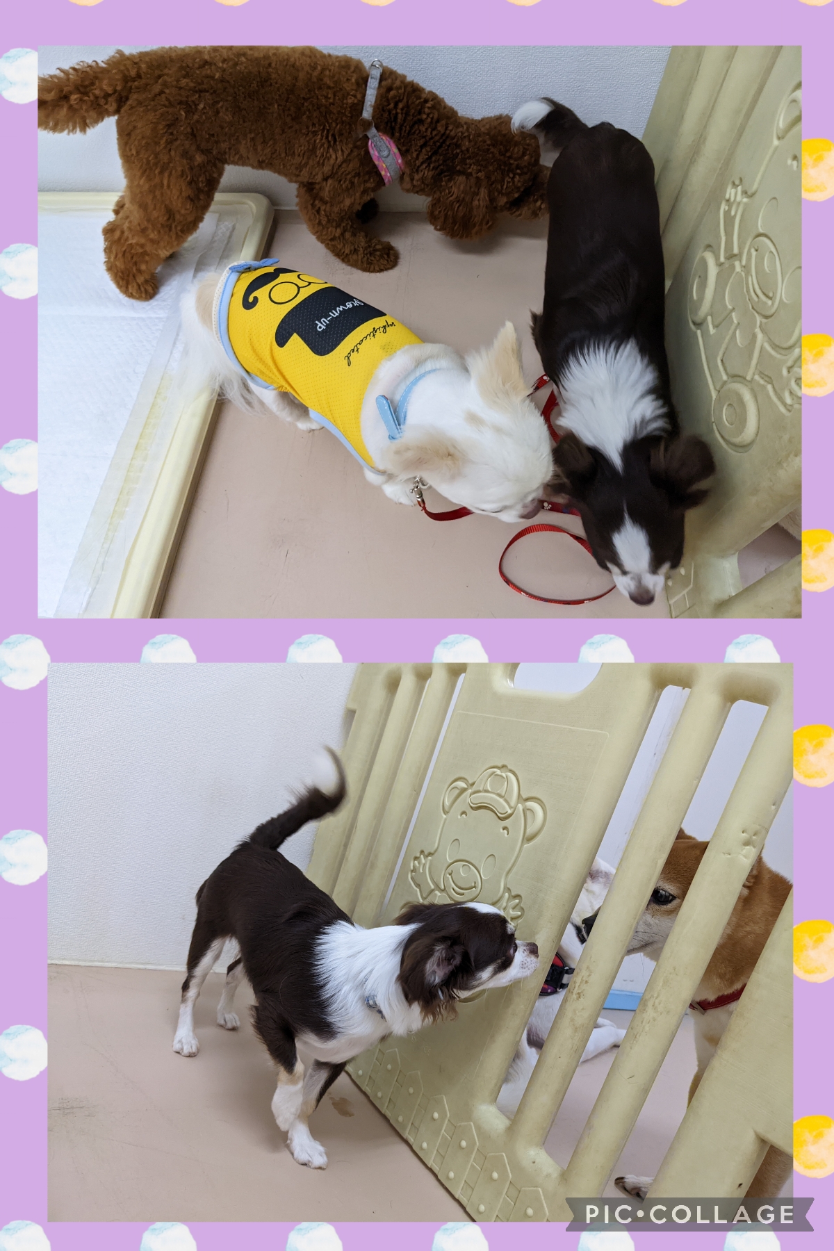 今日の保育園✩.*˚ 2022年8月31日 わんわん保育園日記 スタッフ高木 トイプードル サラちゃん、モカちゃん チワワ おみそちゃん . 先日保護したチワワのハッピー . . はじめまして!と ドキドキしながらも挨拶中( ˶ˊᵕˋ˶) . . たくさん経験して怖くない!に していこう~~♪♪