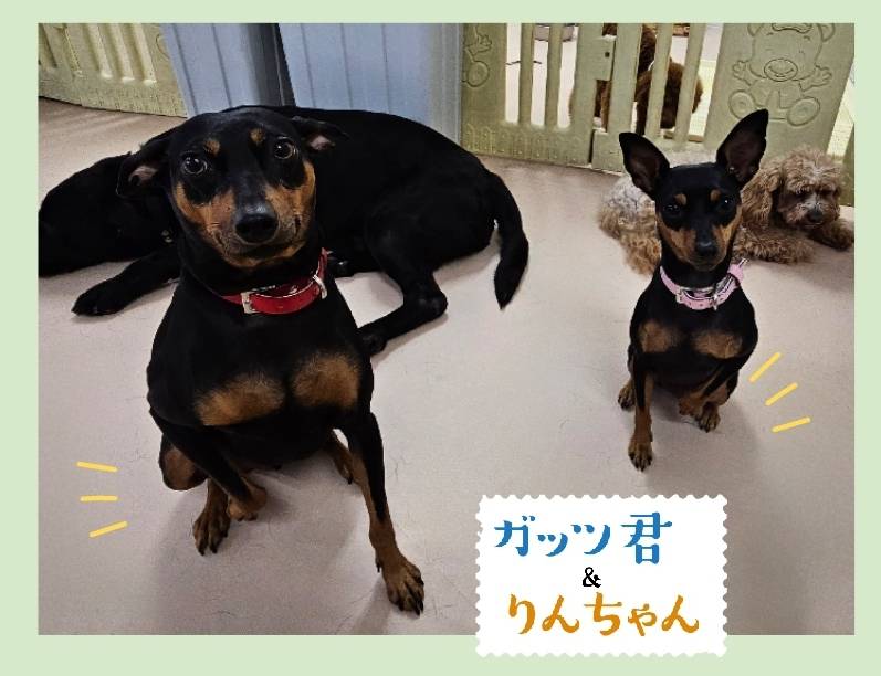 保育園日記 2023年7月1日 わんわん保育園日記 髙橋忍 ミニチュアピンシャーのガッツくん&りんちゃん★ まるで本物の兄妹の様に仕草がシンクロします\(^^)/ カメラを向けるとガッツくんは右前足が… りんちゃんは左前足がピコッと上がりました♪ お家でもシンクロしているのかな(о´∀`о)