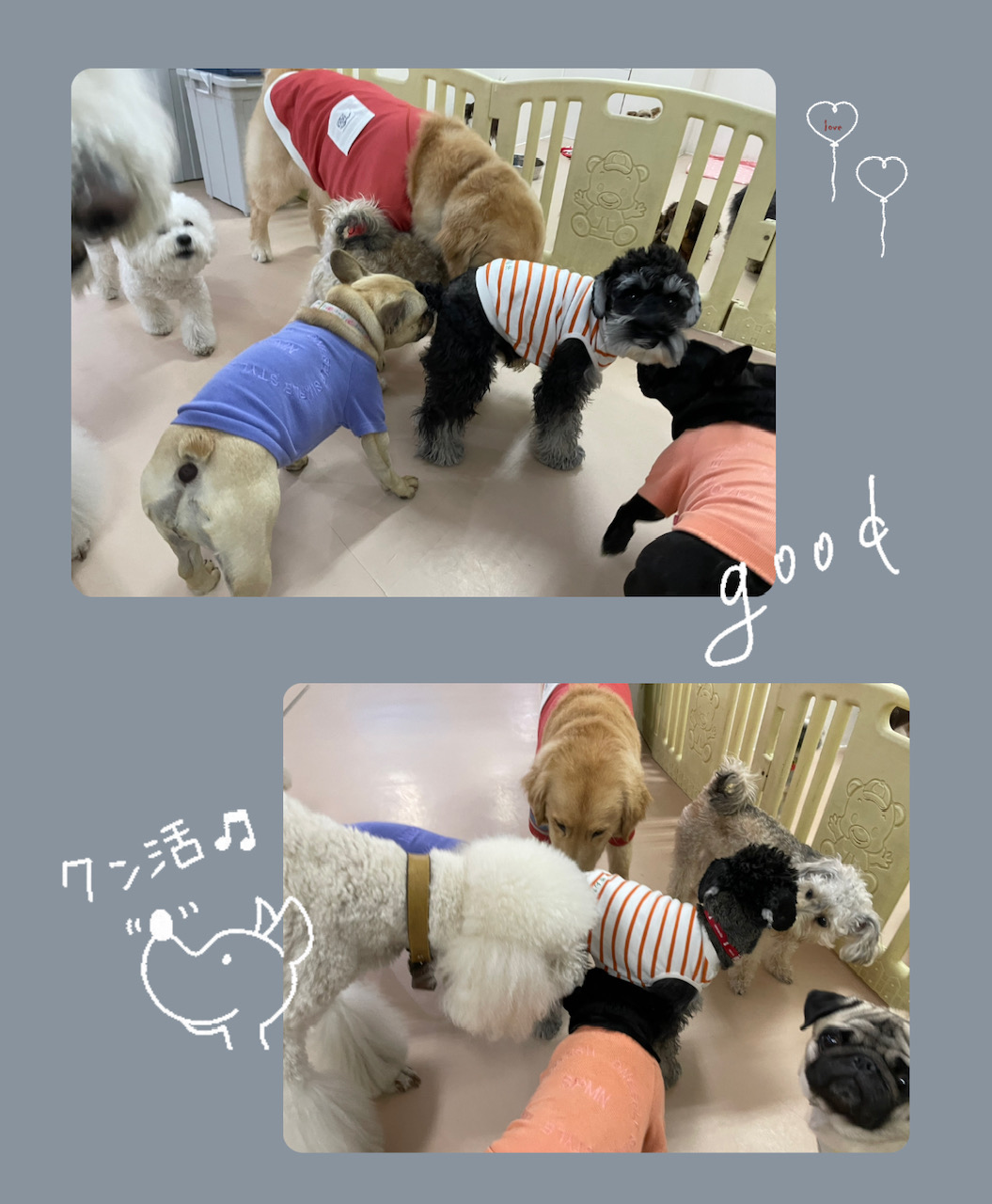 土曜日の保育園★ 2023年3月18日 わんわん保育園日記 スタッフ内間 ・ ・ 【オスワリ】の指示をだした時座ったからOK!ではなく、 わんこの表情、体の力の抜け具合、リラックスできてるな!と思うまで待ってあげてください☆彡 ・ 指示に従えても、 落ち着いていなければ意味がありません(@_@) ・ ・