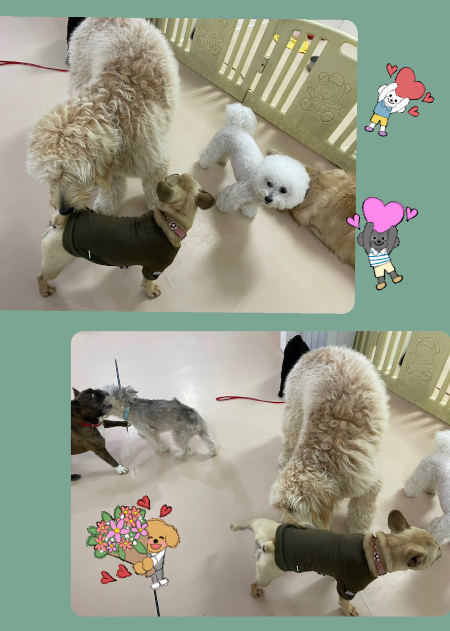 土曜日の保育園! 2023年1月14日 わんわん保育園日記 スタッフ内間 昨日の夜から雨が降ってましたね(*_*) 雨でもわんこ達には関係なし!! 色んな子とコミュニケーションをとり、遊び、寝る、 グイグイ行きすぎてしまい怒られたり、怒ったり! 様々な経験から成長に繋がります♪
