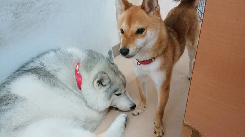 柴犬の大ちゃんはというと遊ばな損!の方で寝ているジーナにちょっかい!