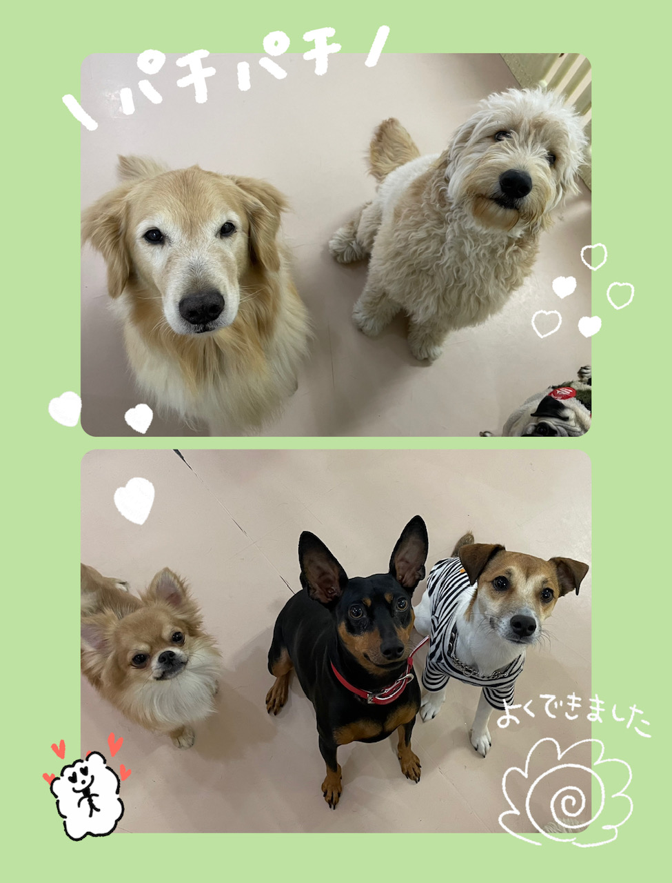 水曜日の保育園★ 2023年2月15日 わんわん保育園日記 スタッフ内間 ・ ・ ゴールデンのマリウスくん ドゥードルのウォンくん 保護犬チワワのアスター ミニピンのガッツくん ジャックラッセルのジャックくん パグのちくわくん 保護犬MIXのモナ ・ ・ 大型犬も小型犬もみんな一緒に٩(๑❛ᴗ❛๑)۶♡ ・