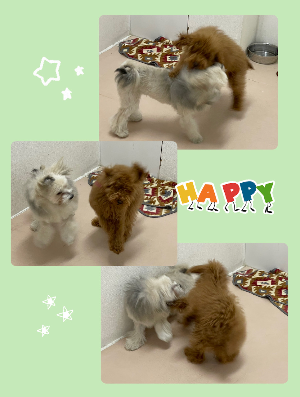 火曜日の保育園⭐︎ 2023年3月14日 わんわん保育園日記 スタッフ内間 ・ ・ 今日からスタート! TPパピーちゃんのぽんたくん♪ ○散歩中の引っ張りや飛びつき ○甘噛み などなど ・ ・ 初日でしたが慣れてくると保護犬mixのバディと 激しく遊んでいました(*´-`) ・