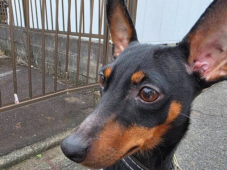 ミニピンですがキリッとした顔つきの男の子で、ドーベルマンのヒカルを思い出します。
